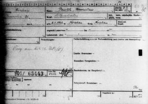 Karta pracy Bronisława Pawlika z okresu II wojny światowej, zatrudnionego jako pomocnik w Kolei Wschodniej „Ostbahn” w Krakowie a następnie w Służbie Budowlanej „Baudienst” w Krakowie (Oddział 3/100 Prokocim).
