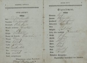 Książka wędrowna czeladnika blacharskiego Józefa Bąkowskiego zawierająca m.in. opis osoby oraz poświadczenia pobytów w różnych miejscowościach w latach 1843-1850 (ANK, Akta miasta Krakowa, sygn. 29/33/3017, s. 2-5, 14-15).
