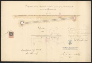Plan na podłączenie ścieków do kanalizacji miejskiej z 1889 r. (ANK, Archiwum planów Budownictwa Miejskiego w Krakowie, sygn. 29/1410/6970)
